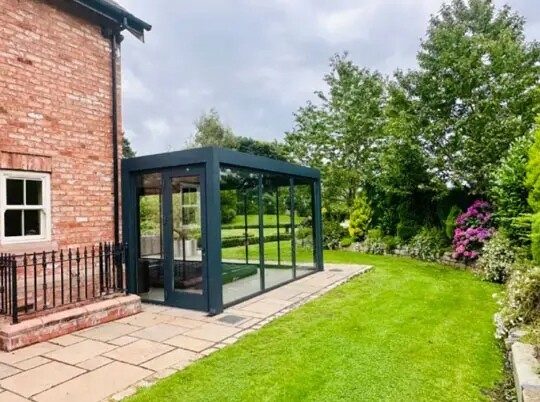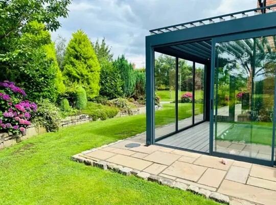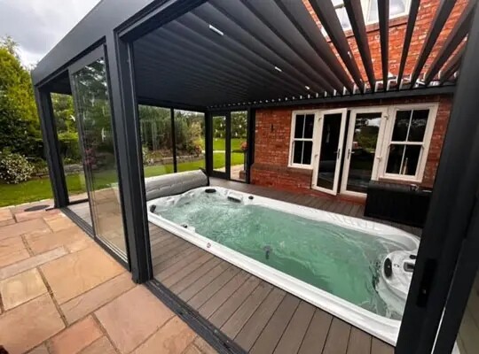 In this stunning residence in Manchester, we have designed and delivered a truly remarkable outdoor solution: a fully enclosed Bioclimatic Rotatable Pergola with Violux, dedicated to enhancing the hot tub area. This architectural centerpiece not only elevates the aesthetic appeal of the property but also provides a luxurious and serene environment that can be enjoyed throughout all seasons.